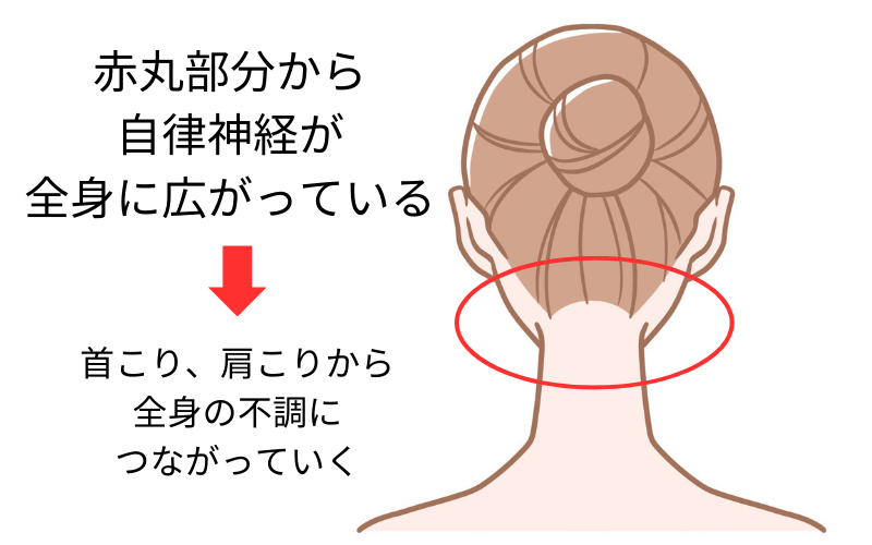 例えば、首の筋肉が緊張してしまうと、自律神経は圧迫されてしまいさまざまな不調になってしまうというイメージです。